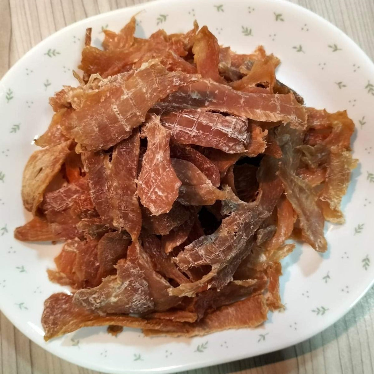 Chicken inner fillet, Dehydrated. Baked. Single ingredient. No preservatives. No addictives. No Seasoning n colourings added.